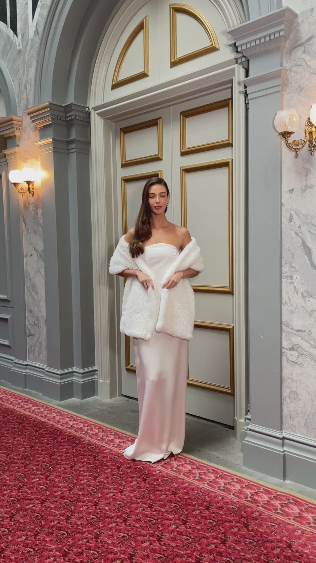 Introducing 'Sia', a beautifully cosy faux fur wrap that adds sophistication and comfort to your bridal ensemble. Its plush texture and warmth make it ideal for chilly wedding days, and it beautifully complements your special day attire. An effortless layer, Sia adds a touch of glamour while keeping you warm on your big day.